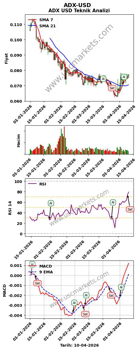 - ADX-USD teknik analizi MACD göstergesi (9, 12, 26 parametreleri ile) en son bir 'Al' sinyali üretmiştir.