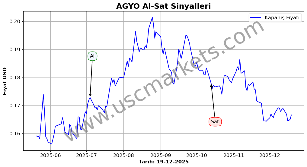 Son durum : 19-12-2025 tarihinde AGYO hissesi için 'Alış' sinyali verildi. Bu, hissenin değer kazanma olasılığını gösterir.