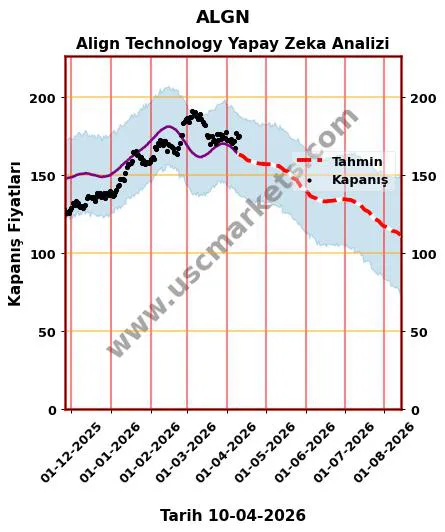 Yapay zeka yardımıyla hazırladığımız fiyat tahmin grafiği, ALGN hisse yorumu ve Align Technology 2026 yıl sonu hedef fiyat tahminleri yukarıda detaylı olarak yer almaktadır.