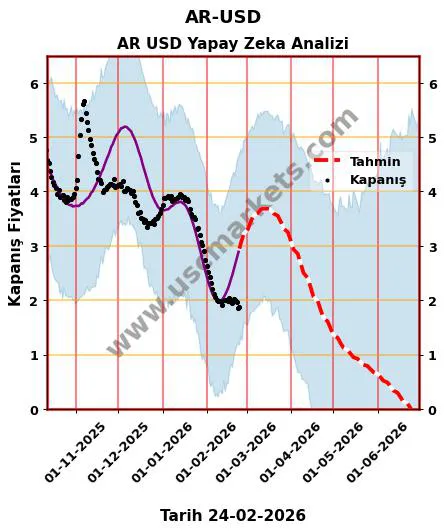 Yapay zeka yardımıyla hazırladığımız fiyat tahmin grafiği, AR-USD yorumu ve AR USD 2026 hedef fiyat tahminleri yukarıda detaylı olarak yer almaktadır.
