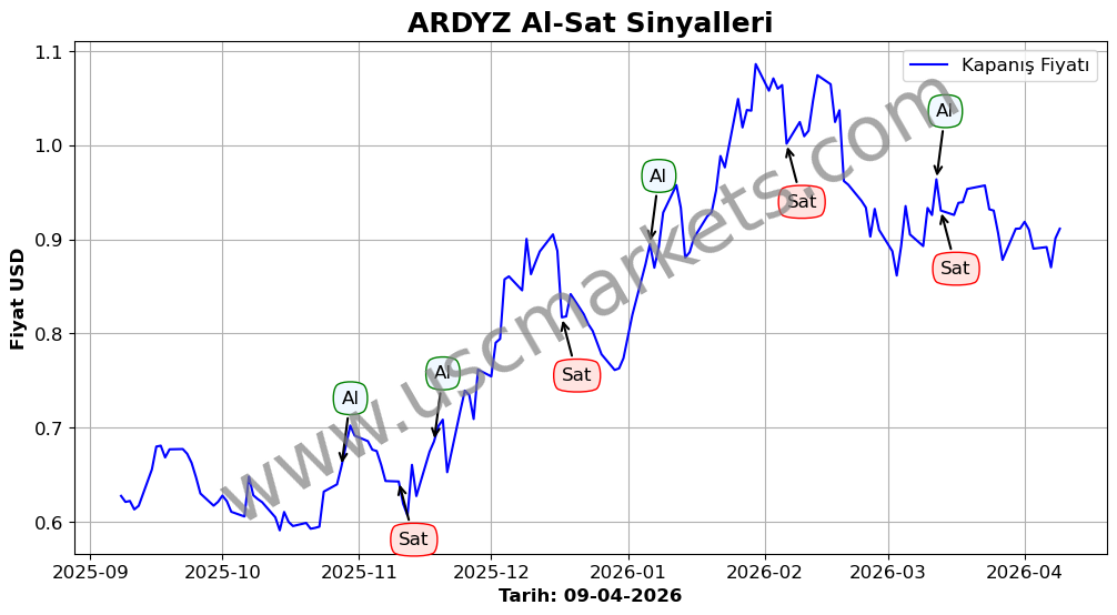 Son durum : 09-04-2026 tarihinde ARDYZ hissesi için 'Alış' sinyali verildi. Bu, hissenin değer kazanma olasılığını gösterir.
