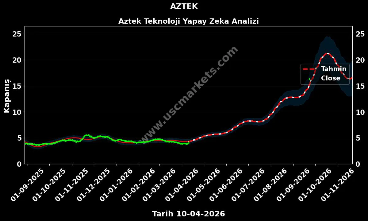Bu bölümde AZTEK hissesi için teknik analiz verileri kullanılarak oluşturulan yapay zeka tahminleri paylaşılmaktadır. Hedef fiyatlar yeni veriler geldikçe günlük olarak değişebilir.