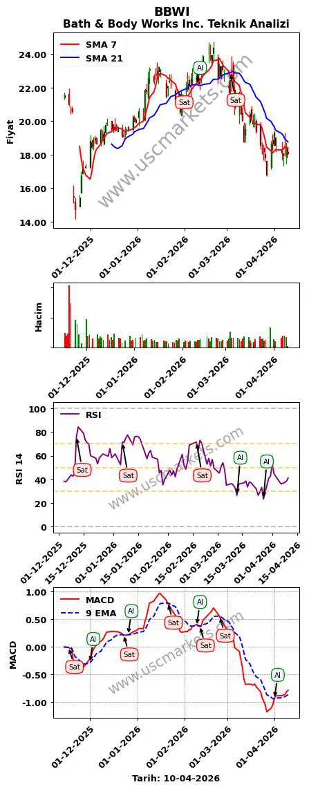 - BBWI teknik analizi MACD göstergesi (9, 12, 26 parametreleri ile) en son bir 'Al' sinyali üretmiştir.