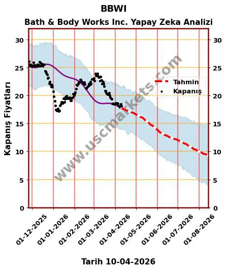 Yapay zeka yardımıyla hazırladığımız fiyat tahmin grafiği, BBWI hisse yorumu ve Bath & Body Works Inc. 2026 yıl sonu hedef fiyat tahminleri yukarıda detaylı olarak yer almaktadır.