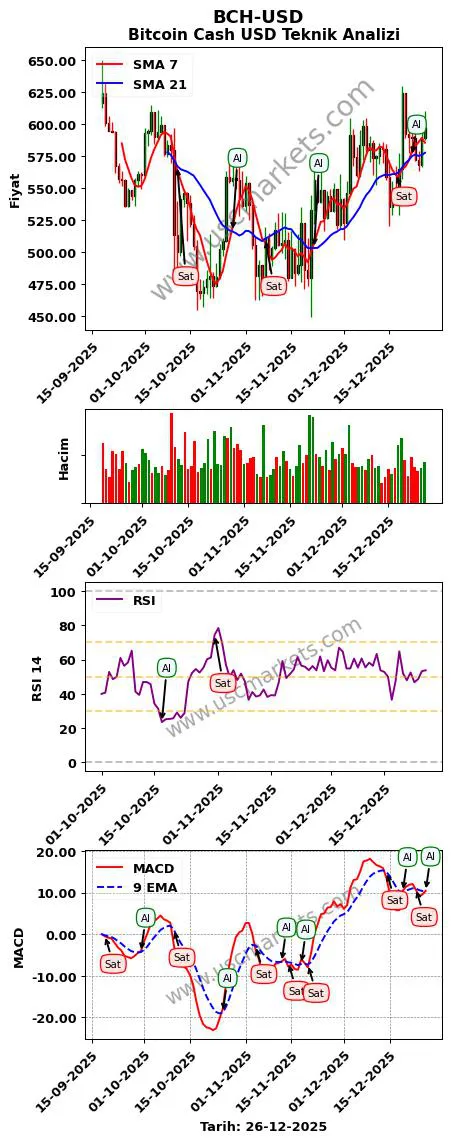 - BCH-USD teknik analizi MACD göstergesi (9, 12, 26 parametreleri ile) en son bir 'Al' sinyali üretmiştir.