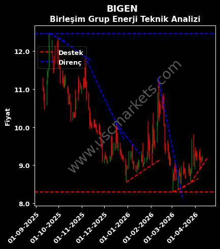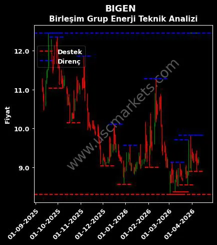 USC Markets BIGEN hisse yorumu ile ilgili teknik analiz sonuçlarına göre hesaplanan Birleşim Grup Enerji destek ve direnç fiyatları aşağıdaki tablodadır.