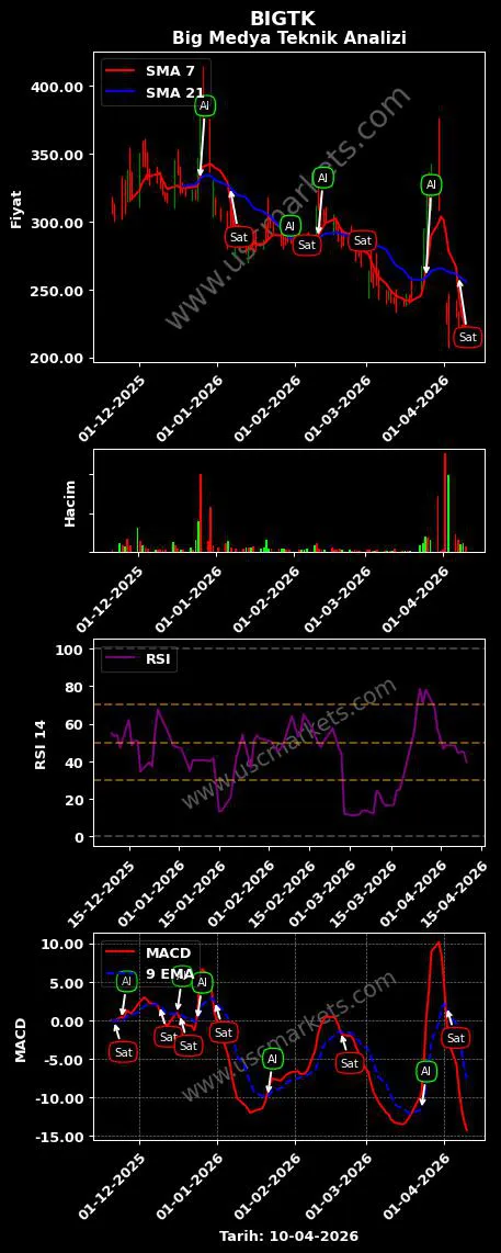 - BIGTK teknik analizi 14-periyotlu RSI göstergesi en son bir 'Sat' sinyali üretmiştir.