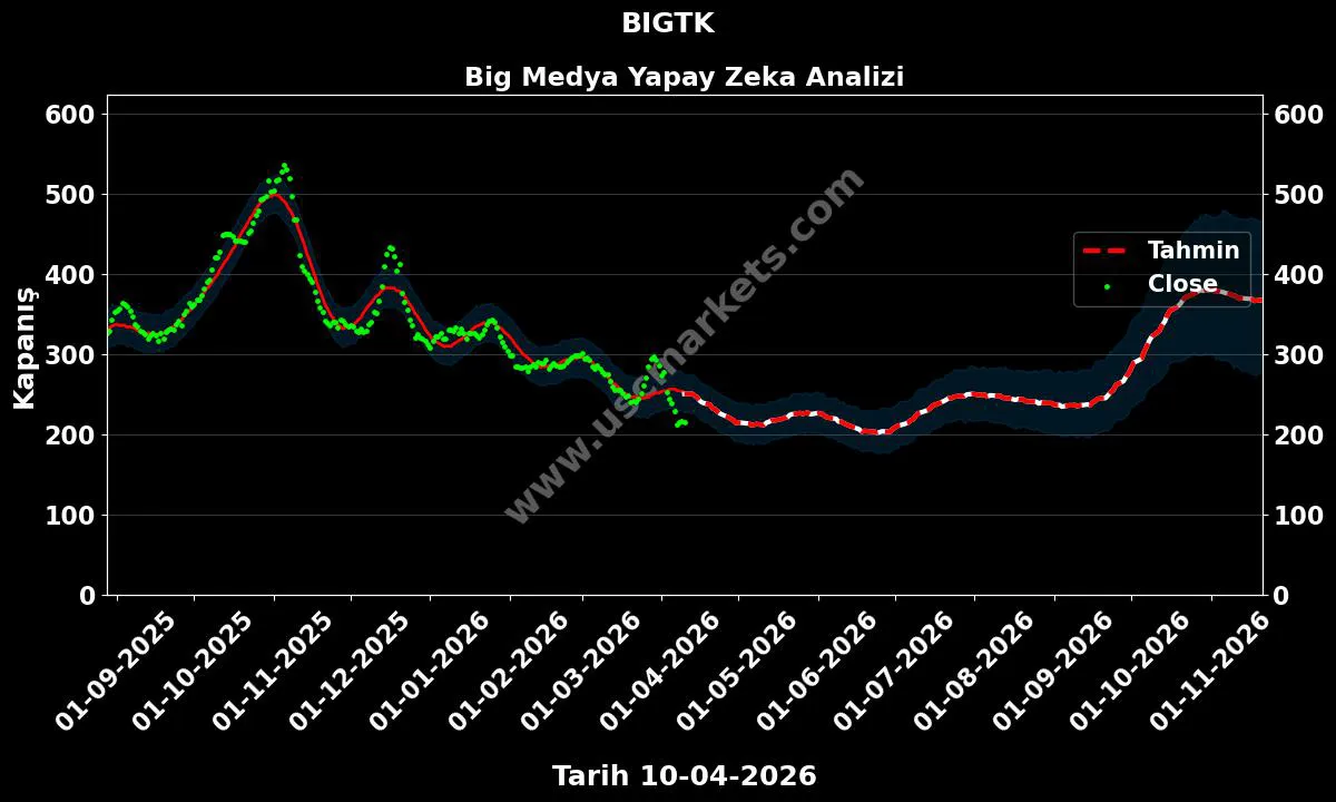 Yapay zeka yardımıyla hazırladığımız fiyat tahmin grafiğini, BIGTK hisse yorumunu ve Big Medya hedef fiyat tahminlerini yukarıda inceledik.