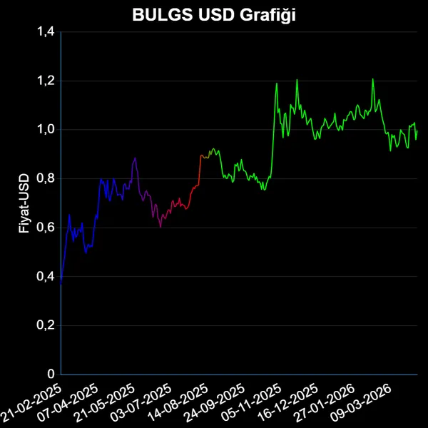BULGS hisse fiyatı son bir ayda dolar cinsinden %2.86 değer kazanarak , 10-03-2026 tarihinde 0.98 Dolardan 1.008 Dolara yükseldi.