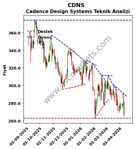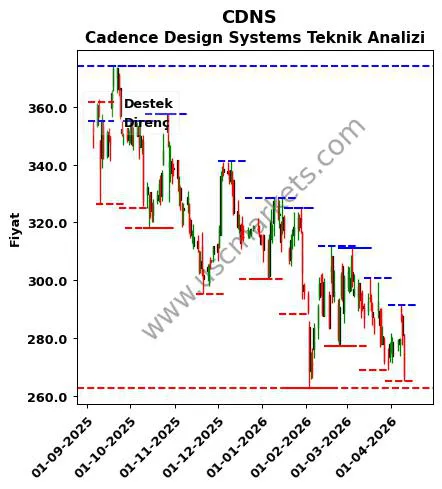 CDNS yorumu ile ilgili algoritmik analiz sonuçlarına göre belirlenen Cadence Design Systems destek ve direnç fiyatları aşağıdaki tablodadır.