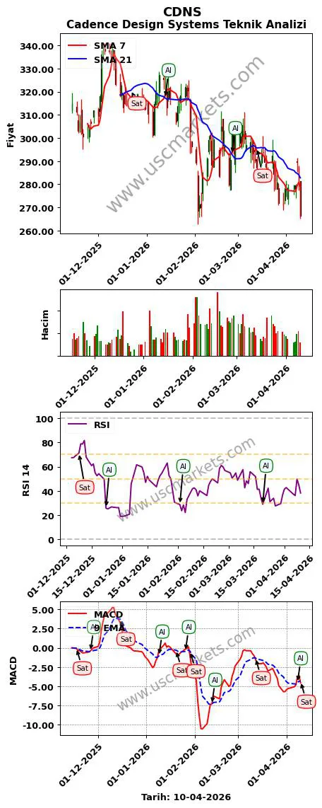 - Cadence Design Systems teknik analizi RSI 29.057 iken 'Al' sinyali vermiştir, şu an ki RSI değeri 46.091.