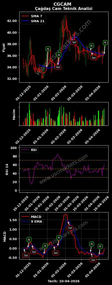 - USC Markets, CGCAM hisse senedi için MACD göstergesi (9, 12, 26 parametreleri kullanılarak) son olarak bir 'Al' sinyali üretti. USC Markets Çağdaş Cam hisse senedi önerisini 'Al' olarak belirledi.