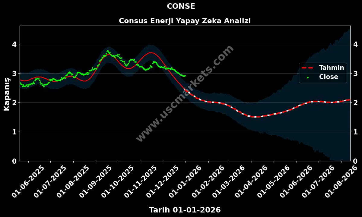 Yapay zeka yardımıyla hazırladığımız fiyat tahmin grafiğini, CONSE hisse yorumunu ve Consus Enerji 2026 hedef fiyat tahminlerini yukarıda inceledik.