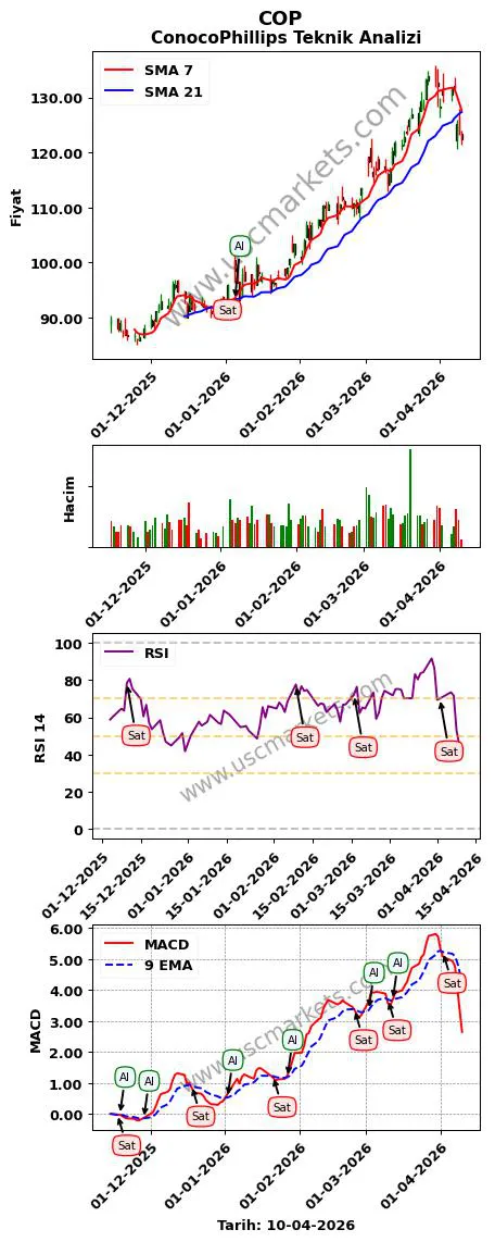 1. ConocoPhillips teknik analizi MACD göstergesi (9, 12, 26 parametreleri ile) en son bir 'Sat' sinyali üretmiştir.