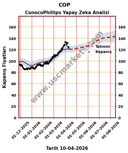 Yapay zeka yardımıyla hazırladığımız fiyat tahmin grafiği, COP hisse yorumu ve ConocoPhillips 2026 yıl sonu hedef fiyat tahminleri yukarıda detaylı olarak yer almaktadır.