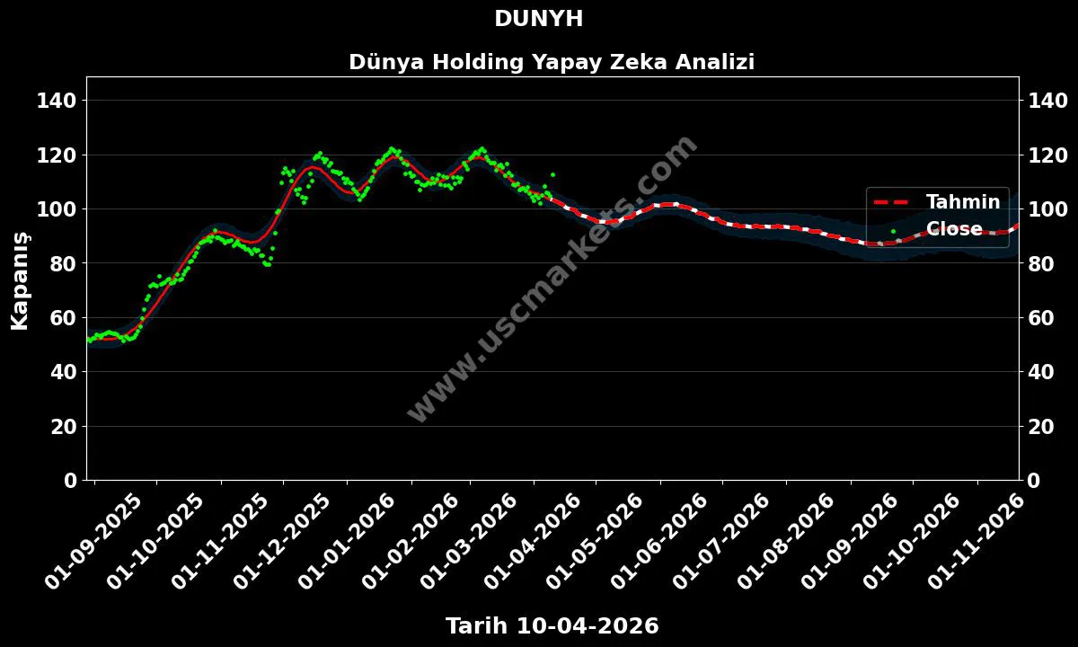 Bu bölümde DUNYH hissesi için teknik analiz verileri kullanılarak oluşturulan yapay zeka tahminleri paylaşılmaktadır. Hedef fiyatlar yeni veriler geldikçe günlük olarak değişebilir.