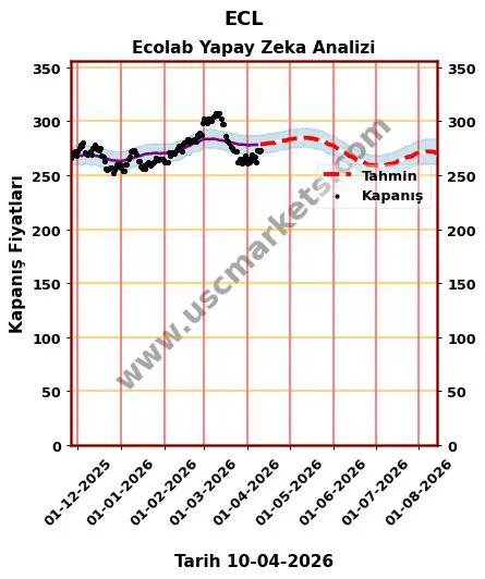 Yapay zeka yardımıyla hazırladığımız fiyat tahmin grafiği, ECL hisse yorumu ve Ecolab 2026 yıl sonu hedef fiyat tahminleri yukarıda detaylı olarak yer almaktadır.