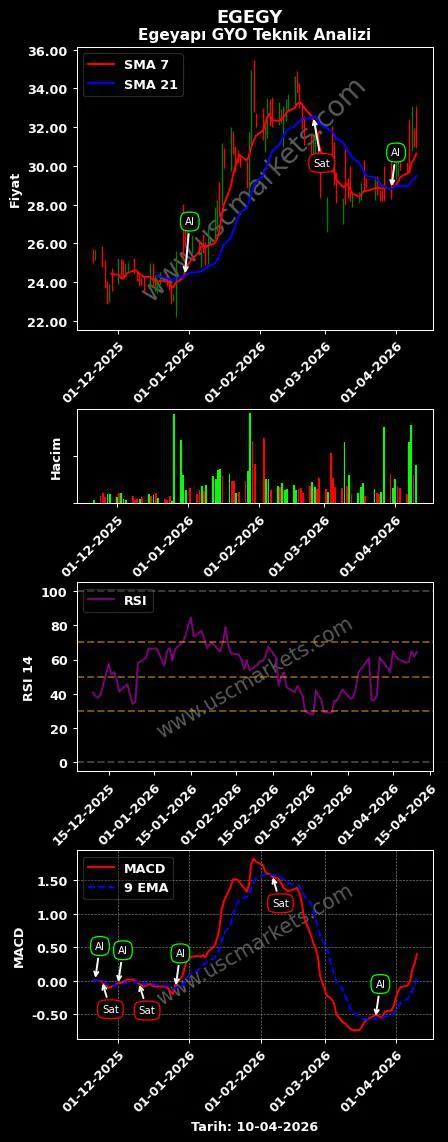 - USC Markets, EGEGY hisse senedi için MACD göstergesi (9, 12, 26 parametreleri kullanılarak) son olarak bir 'Al' sinyali üretti. USC Markets Egeyapı GYO hisse senedi önerisini 'Al' olarak belirledi.