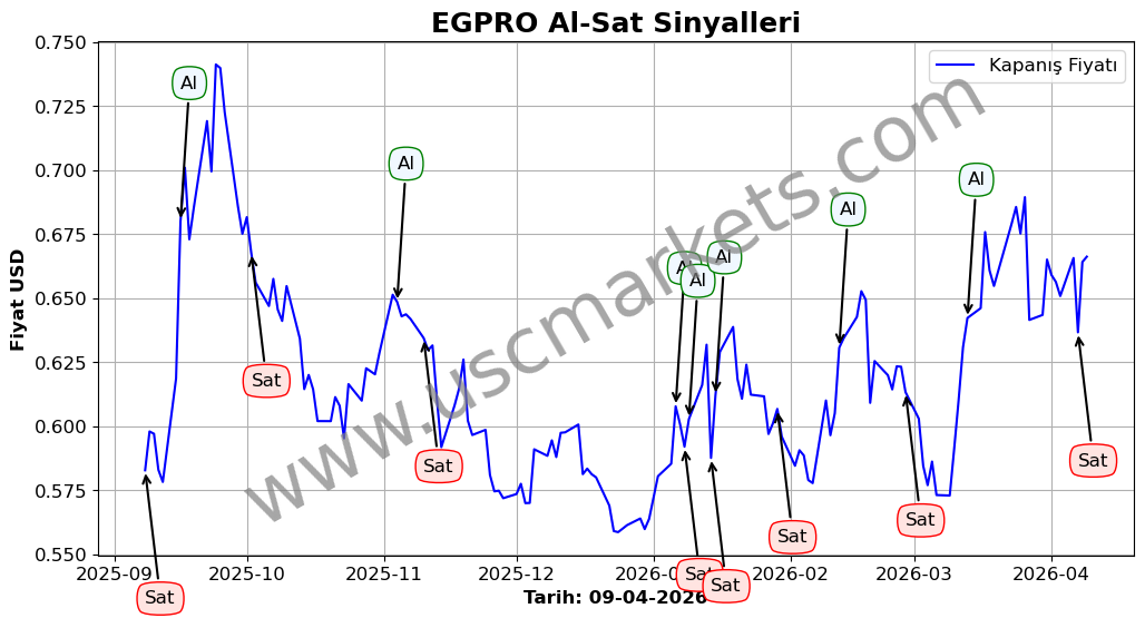 Son durum : 23-03-2026 tarihinde EGPRO hissesi için 'Alış' sinyali verildi. Bu, hissenin değer kazanma olasılığını gösterir.