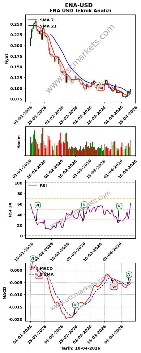 - ENA USD teknik analizi MACD -0.006 iken 'Al' sinyali vermiştir, şu an ki MACD değeri: -0.005