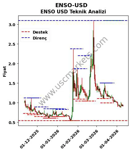 ENSO-USD yorumu ile ilgili algoritmik analiz sonuçlarına göre belirlenen ENSO USD destek ve direnç fiyatları aşağıdaki tablodadır.