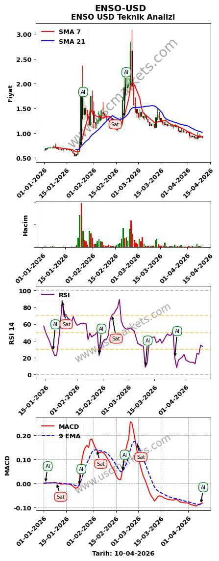 - ENSO USD teknik analizi RSI 19.858 iken 'Al' sinyali vermiştir, şu an ki RSI değeri 35.193.