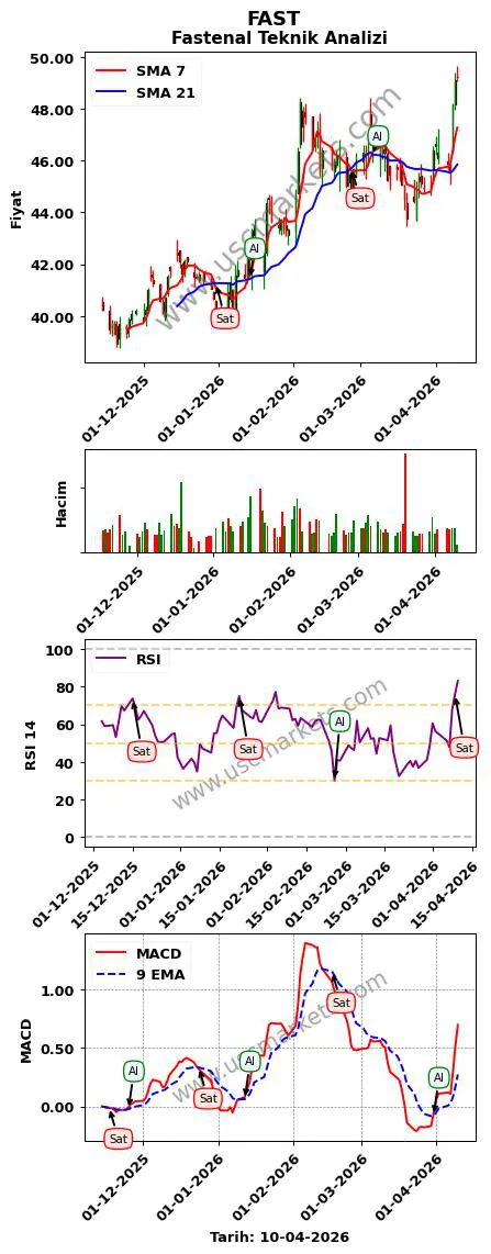 - FAST teknik analizi MACD göstergesi (9, 12, 26 parametreleri ile) en son bir 'Al' sinyali üretmiştir.