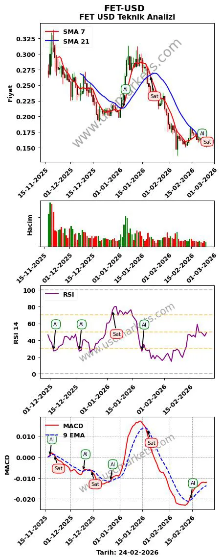 - FET-USD teknik analizi MACD göstergesi (9, 12, 26 parametreleri ile) en son bir 'Al' sinyali üretmiştir.