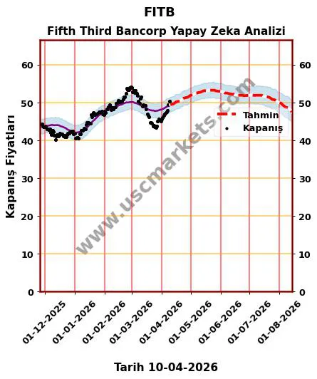 Yapay zeka yardımıyla hazırladığımız fiyat tahmin grafiği, FITB hisse yorumu ve Fifth Third Bancorp 2026 yıl sonu hedef fiyat tahminleri yukarıda detaylı olarak yer almaktadır.