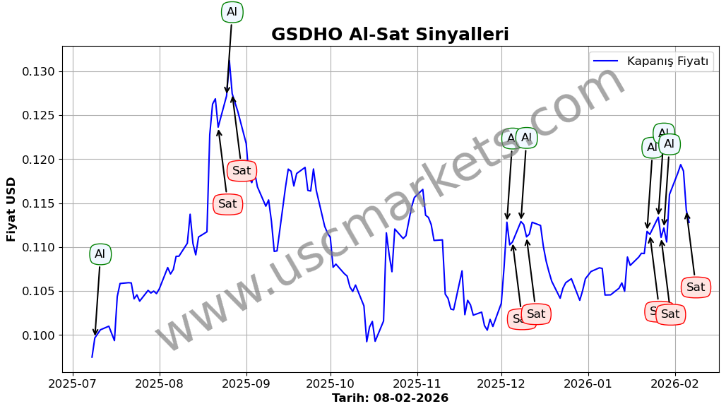 GSDHO hisse fiyatı son bir ayda dolar cinsinden %7.62 değer kazanarak , 08-01-2026 tarihinde 0.105 Dolardan 0.113 Dolara yükseldi.