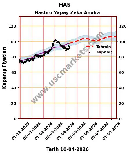 Yapay zeka yardımıyla hazırladığımız fiyat tahmin grafiği, HAS hisse yorumu ve Hasbro 2026 yıl sonu hedef fiyat tahminleri yukarıda detaylı olarak yer almaktadır.