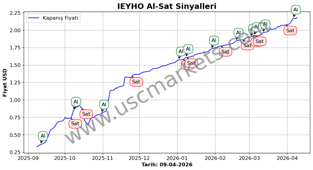 Son durum : 12-09-2025 tarihinde IEYHO hissesi için 'Alış' sinyali verildi. Bu, hissenin değer kazanma olasılığını gösterir.