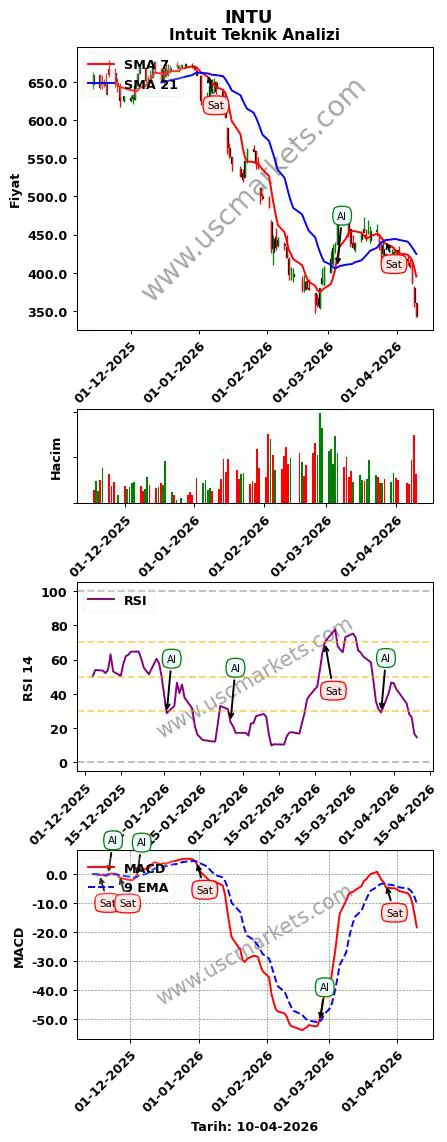 3. Intuit teknik analizi MACD göstergesi (9, 12, 26 parametreleri ile) en son bir 'Sat' sinyali üretmiştir.