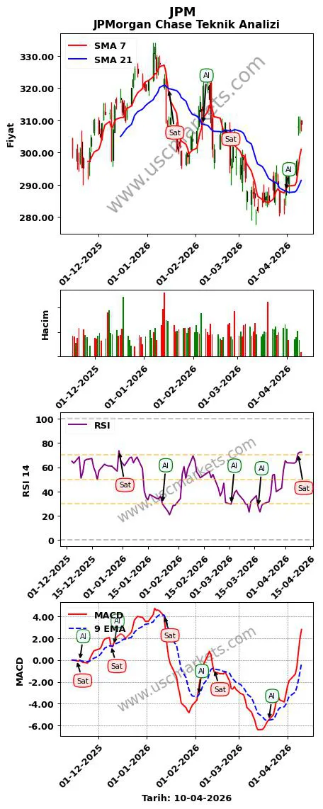 - JPM teknik analizi MACD göstergesi (9, 12, 26 parametreleri ile) en son bir 'Al' sinyali üretmiştir.
