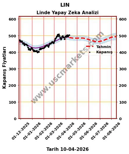 Yapay zeka yardımıyla hazırladığımız fiyat tahmin grafiği, LIN hisse yorumu ve Linde 2026 yıl sonu hedef fiyat tahminleri yukarıda detaylı olarak yer almaktadır.