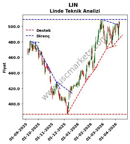 LIN yorumu ile ilgili algoritmik analiz sonuçlarına göre belirlenen Linde destek ve direnç fiyatları aşağıdaki tablodadır.
