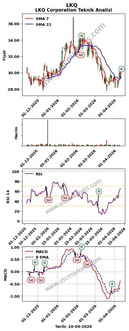 3. LKQ teknik analizi MACD göstergesi (9, 12, 26 parametreleri ile) en son bir 'Al' sinyali üretmiştir.