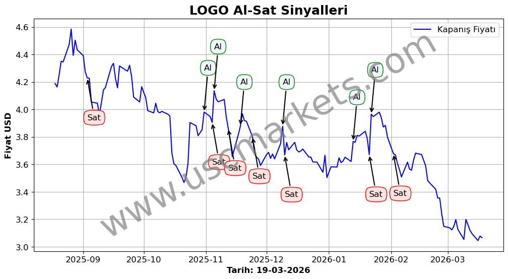 Son durum : 03-02-2026 tarihinde LOGO hissesi için 'Satış' sinyali verildi. Bu, hissenin değer kaybetme olasılığını gösterir.