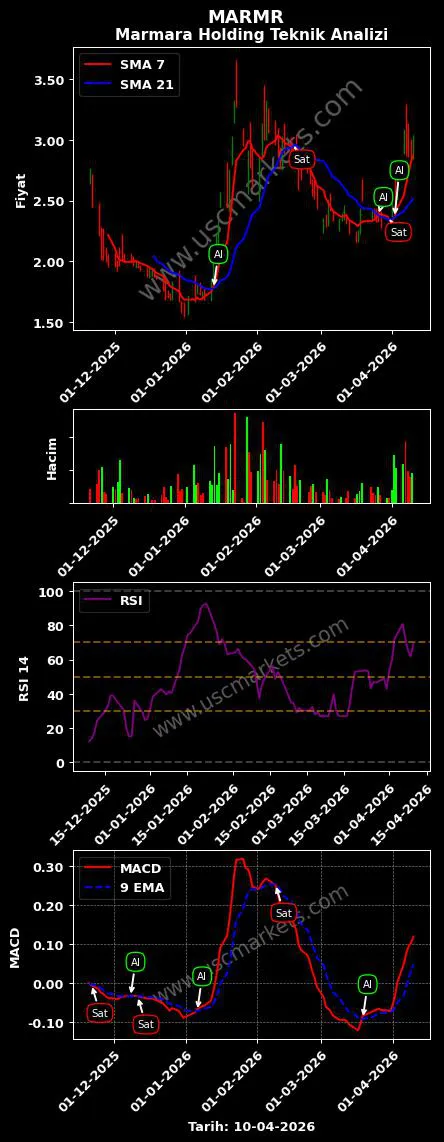 - MARMR teknik analizi 14-periyotlu RSI göstergesi en son bir 'Sat' sinyali üretmiştir.