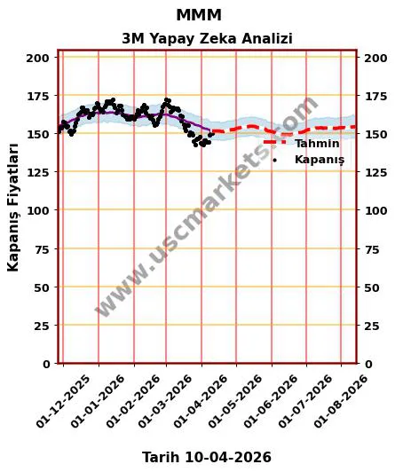 Yapay zeka yardımıyla hazırladığımız fiyat tahmin grafiği, MMM hisse yorumu ve 3M 2026 yıl sonu hedef fiyat tahminleri yukarıda detaylı olarak yer almaktadır.