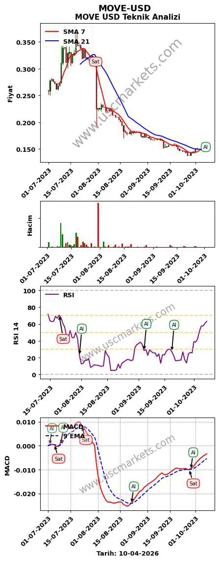 - MOVE-USD teknik analizi MACD göstergesi (9, 12, 26 parametreleri ile) en son bir 'Al' sinyali üretmiştir.