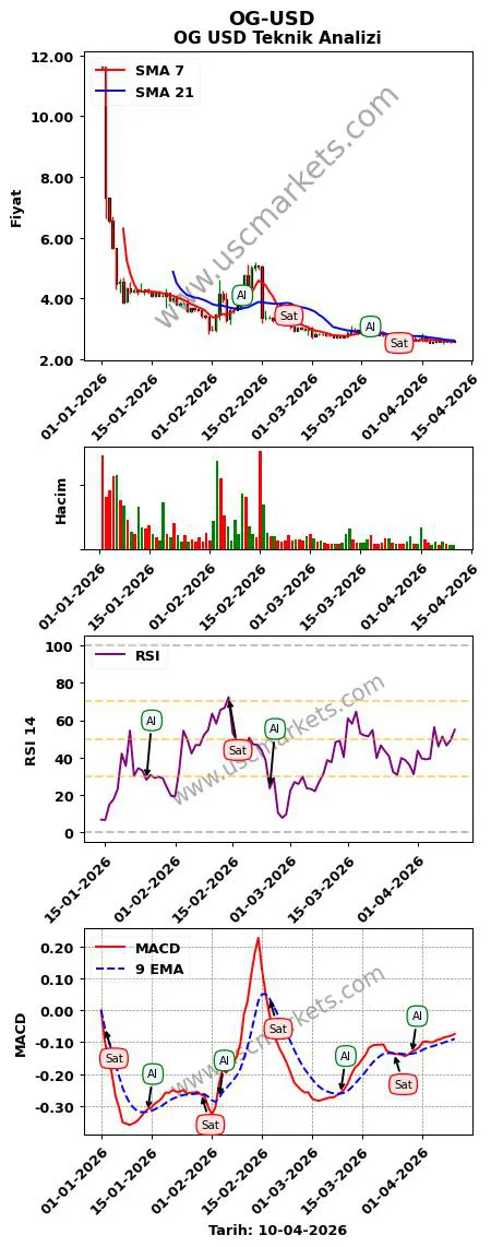 - OG-USD teknik analizi MACD göstergesi (9, 12, 26 parametreleri ile) en son bir 'Al' sinyali üretmiştir.