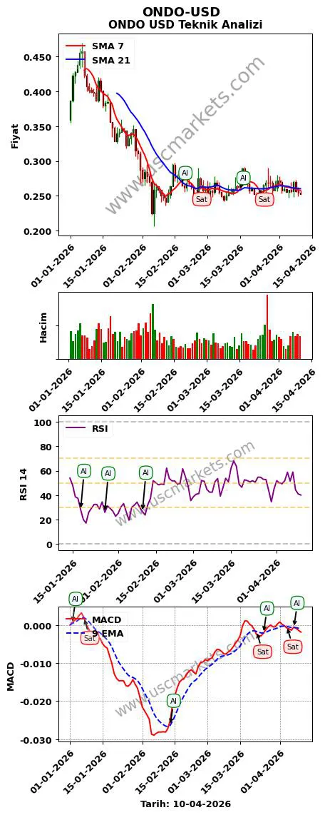 ONDO-USD kripto parası teknik analiz ONDO-USD yorumları aşağıdadır.- ONDO-USD teknik analizi MACD göstergesi (9, 12, 26 parametreleri ile) en son bir 'Al' sinyali üretmiştir.