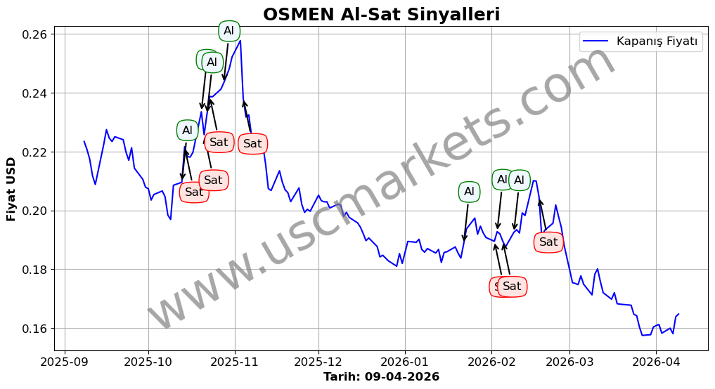 Son durum : 03-03-2026 tarihinde OSMEN hissesi için 'Satış' sinyali verildi. Bu, hissenin değer kaybetme olasılığını gösterir.