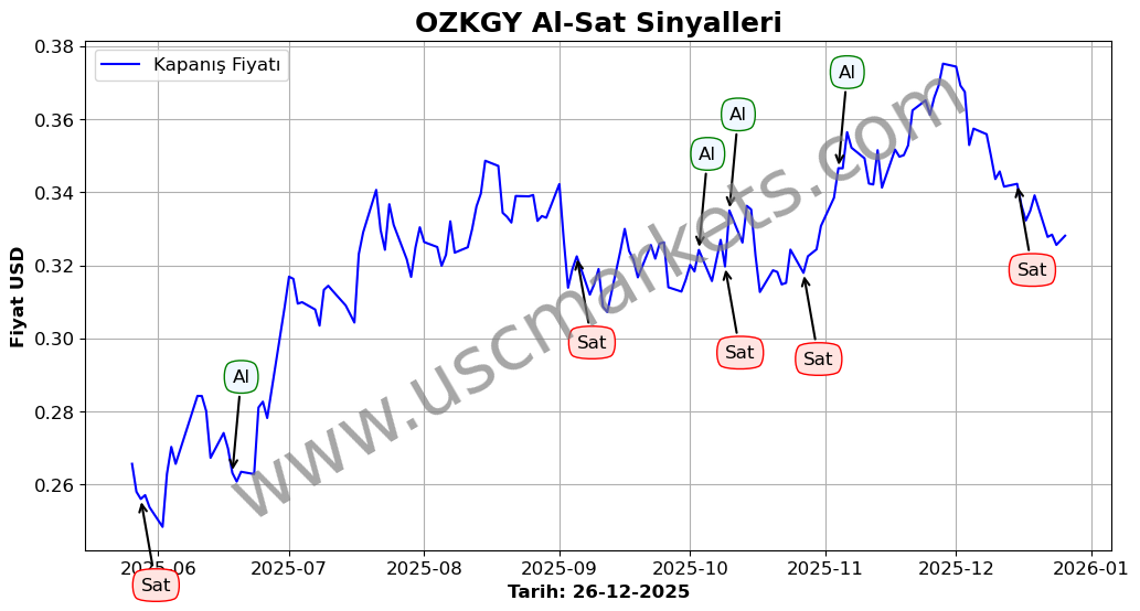 Son durum : 09-12-2025 tarihinde OZKGY hissesi için 'Satış' sinyali verildi. Bu, hissenin değer kaybetme olasılığını gösterir.