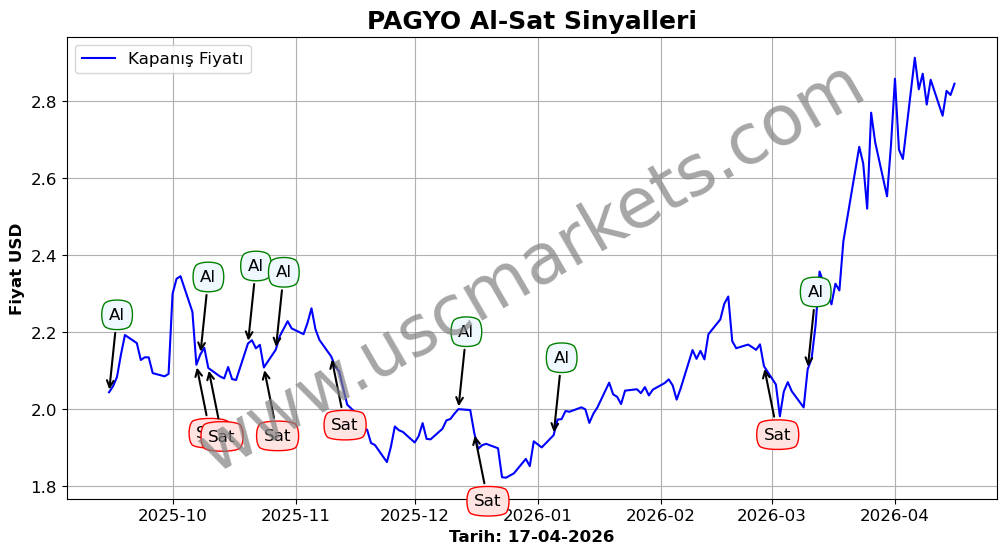 Son durum : 07-04-2026 tarihinde PAGYO hissesi için 'Satış' sinyali verildi. Bu, hissenin değer kaybetme olasılığını gösterir.