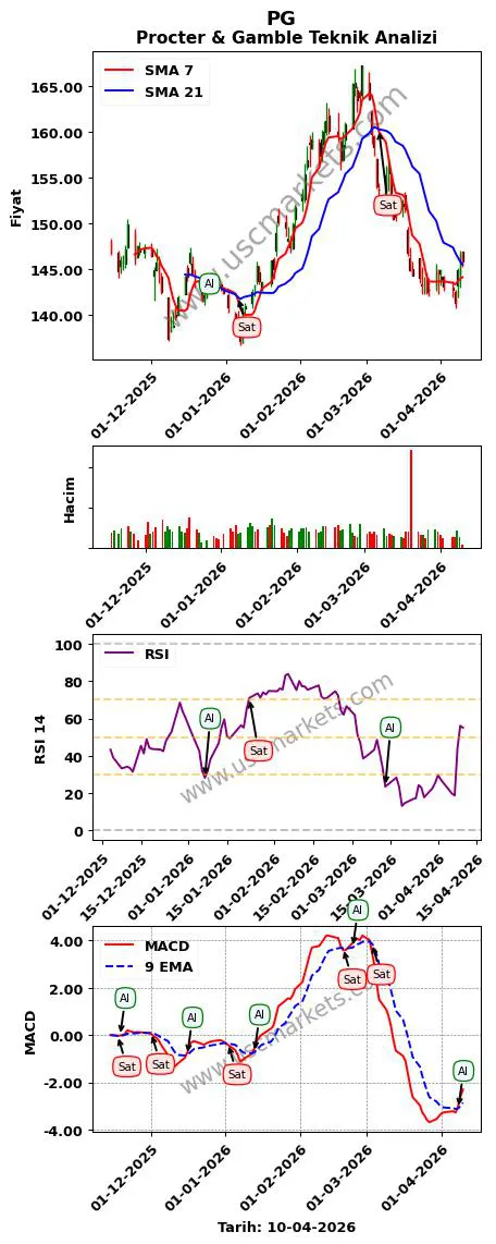 - PG teknik analizi MACD göstergesi (9, 12, 26 parametreleri ile) en son bir 'Al' sinyali üretmiştir.