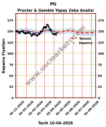 Yapay zeka yardımıyla hazırladığımız fiyat tahmin grafiği, PG hisse yorumu ve Procter & Gamble 2026 yıl sonu hedef fiyat tahminleri yukarıda detaylı olarak yer almaktadır.