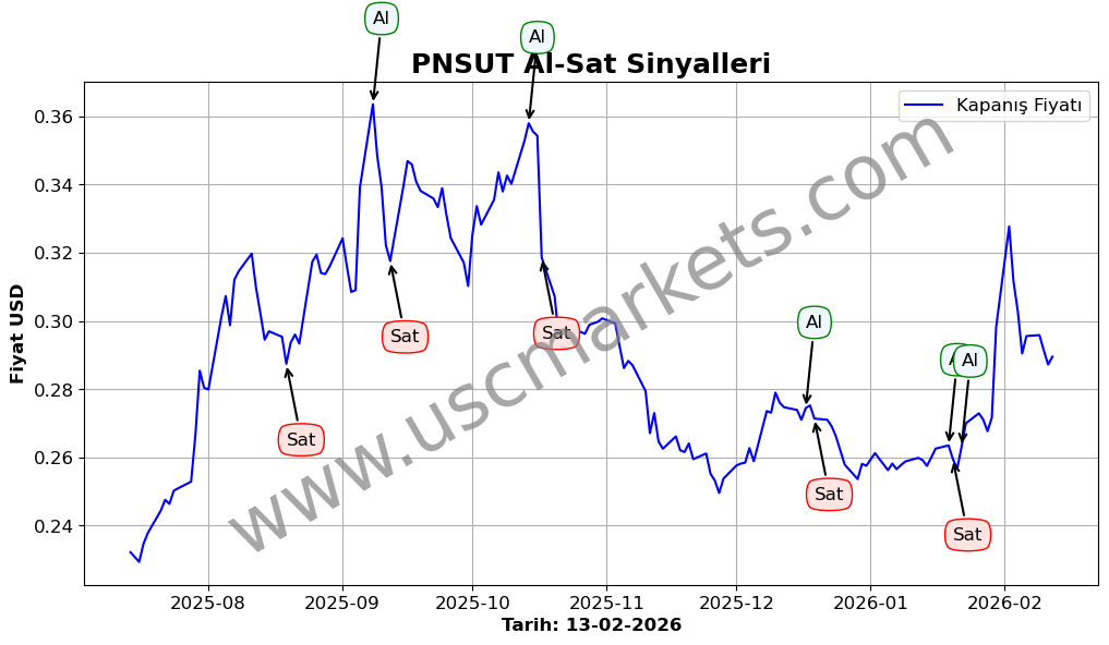 Son durum : 03-02-2026 tarihinde PNSUT hissesi için 'Satış' sinyali verildi. Bu, hissenin değer kaybetme olasılığını gösterir.
