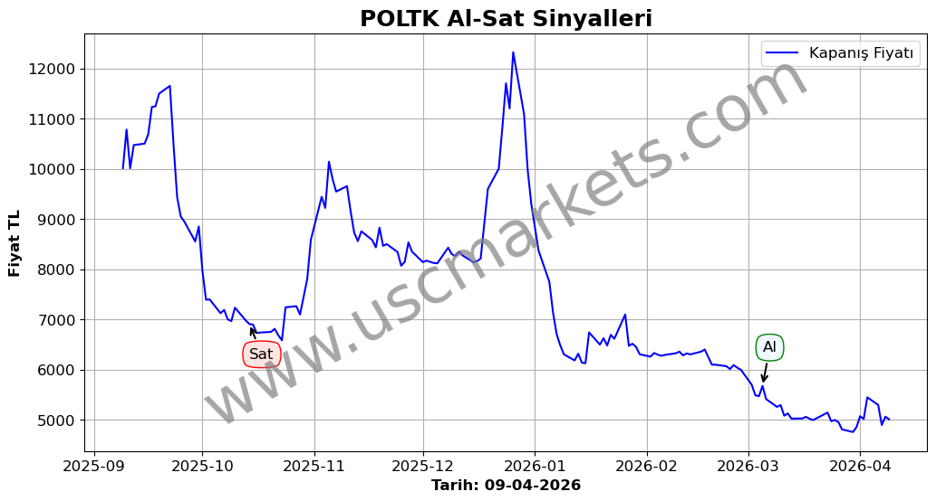 Son durum : 06-04-2026 tarihinde POLTK hissesi için 'Satış' sinyali verildi. Bu, hissenin değer kaybetme olasılığını gösterir.